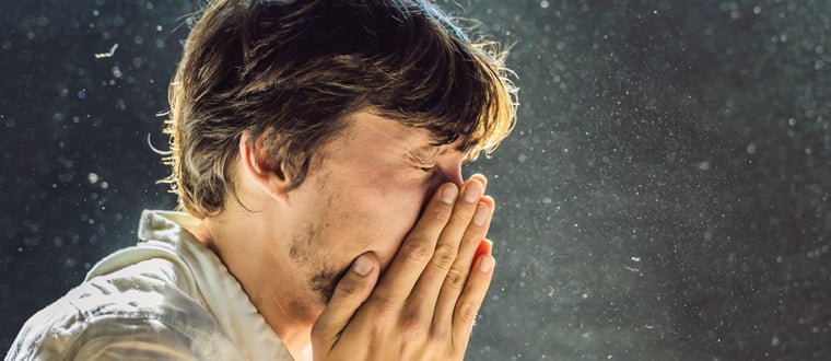 House dust mites, cats and dogs cause the most common indoor allergens. House dust mite allergens are found in beds, soft furnishings, and carpets, and become airborne only after vigorous disturbance (such as shaking out the bedcovers) and settle quickly. Symptoms, such as sneezing or wheezing will not occur on immediate contact with dust mites, but after repeated overnight exposure while you are in bed. The symptoms are frequently worse in the morning.