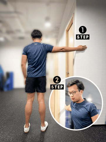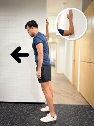 - 伸直手或曲手呈90度,平放在牆邊